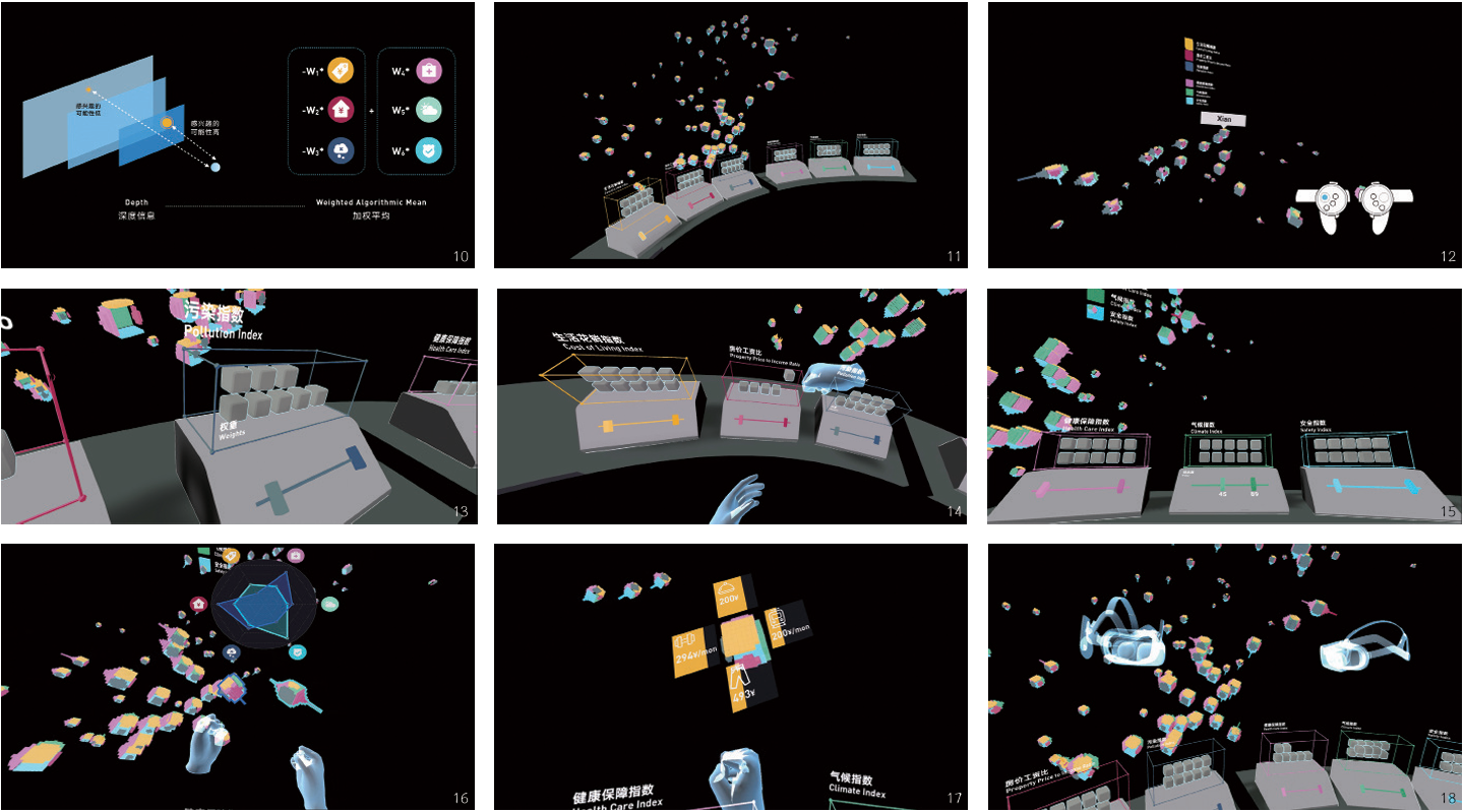 Design Statement: In this era of data overload, information visualization, like astronomers’ telescopes and biologists’ microscopes, is a tool for processing data into a form that is easy for the human brain to understand and absorb. The data we come into contact with are often high-dimensional data with more than two attribute values per data item; however, our commonly used paper media and screens only have two physical dimensions to display information, which is a limitation for the presentation of high-dimensional data.