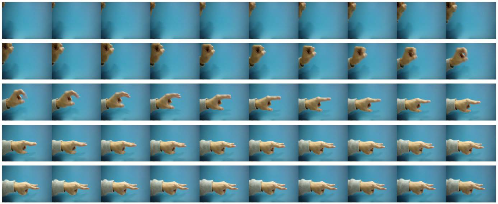In this paper, we propose a vision-based hand gesture recognition system for human-computer interaction. The gesture recognition systems are employed in developing a rock-paper-scissors game between human and our robotic hands in realtime. Our task is to predict the gestures as soon as possible by using high-speed cameras. Due to the computational complexity, the standard long-term recurrent convolution network-based action classification system cannot be contented with classification tasks based on high-speed cameras. We propose to address this issue by employing a more efficient network architecture and using a threshold-based method to predict the gesture in advance. We validate our proposed method on the new gesture dataset for the rock-paper-scissors game. The model is able to successfully learn gestures varying in duration and complexity. A comparative analysis of CNN and long-term recurrent convolution network is performed. We report a gesture classification accuracy of 97% and report a near real-time computational complexity of 7 ms per frame.[......]继续阅读
